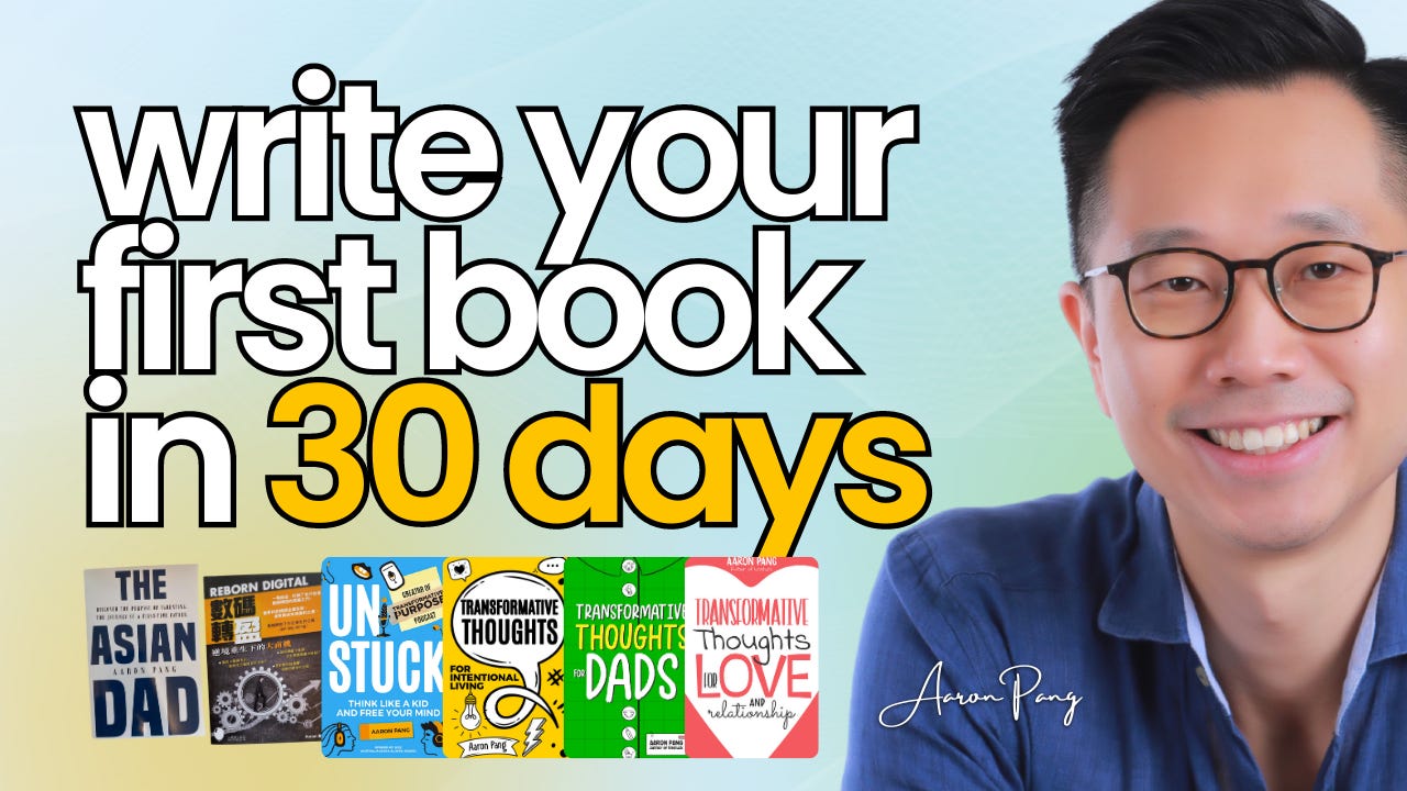 5 Tips To Write Your First Book in 30 DaysAaron PangAug 11, 2023∙ Paid2ShareA lot of people have been asking me how to write their first book. Before you invest in the tactics which you can easily find on the internet, it's important to have the right mindset.You don't rise …This post is for paid subscribersSubscribeAlready a paid subscriber? Sign inPreviousNext